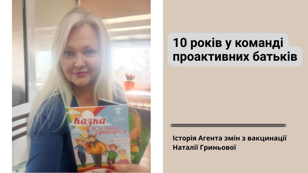 Наталія Гриньова — керівниця Вінницького осередку ГО «Батьки за вакцинацію» та Агент змін — пройшла з нами шлях довжиною у 10 років. Вона — той неперевершений майстер комунікації, який здатний розвіяти будь-які страхи батьків, перетворюючи складні медичні терміни на зрозумілу мову турботи.